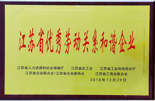 2018年12月,半岛online(中国)荣获“江苏省优秀劳动关系和谐企业”的称号。